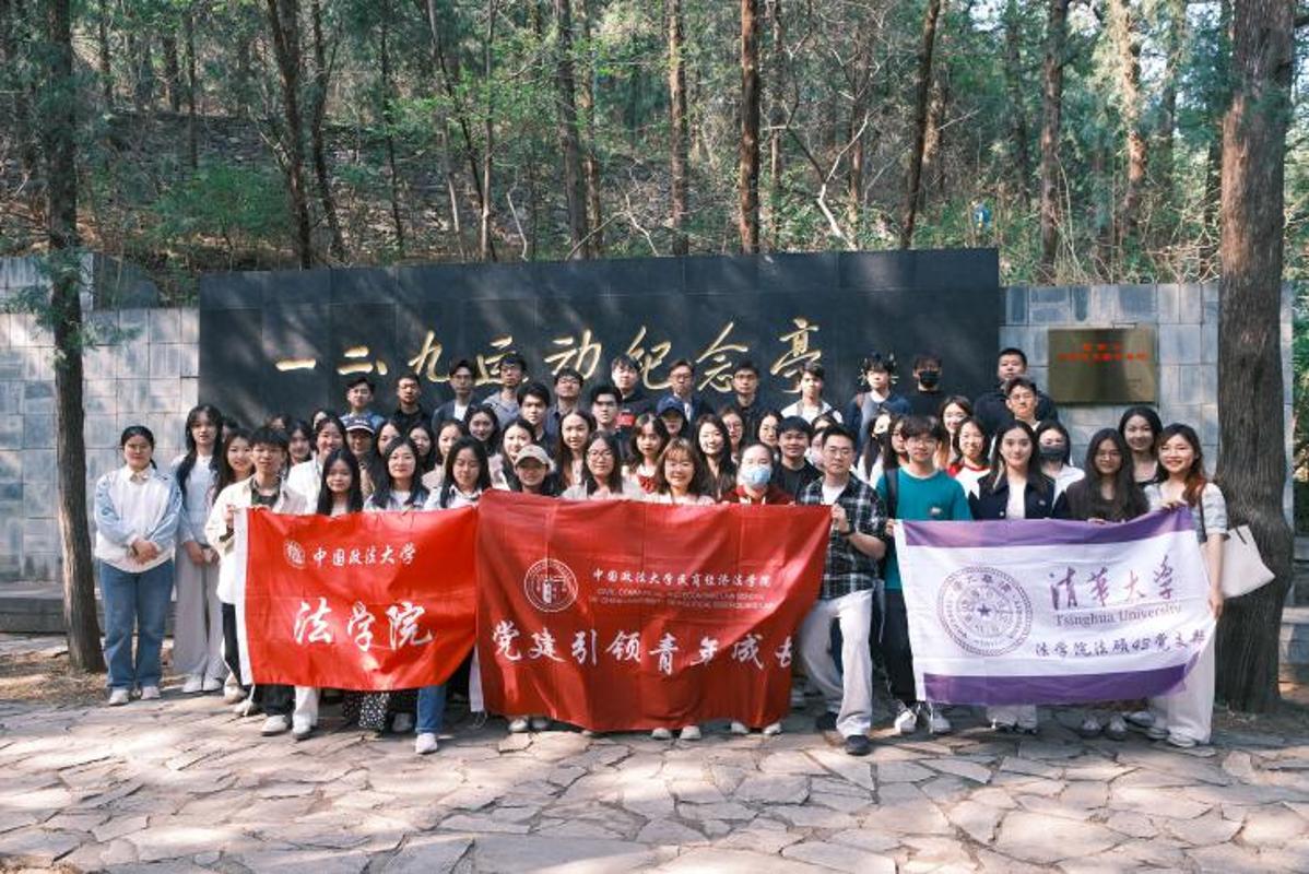 为扎实开展深入贯彻中央八项规定精神学习教育,持续深化学习党的二十届三中全会精神,常态化深入开展党史学习教育,4月19日,法学院2024级法本法硕班党支部,联合民商经济法学院24民商1班党支部、清华大学法学院法硕43党支部,一同前往国家植物园“一二·九”运动纪念地等,开展“铭记历史强党性,德法兼修促清风”联学共建主题党日活动。本次活动采用理论学习与实地参观相结合的方式,旨在增强青年学生的党性修养,厚植家国情怀,提升作风建设,激励新时代青年积极投身法治建设,为法治事业贡献力量。