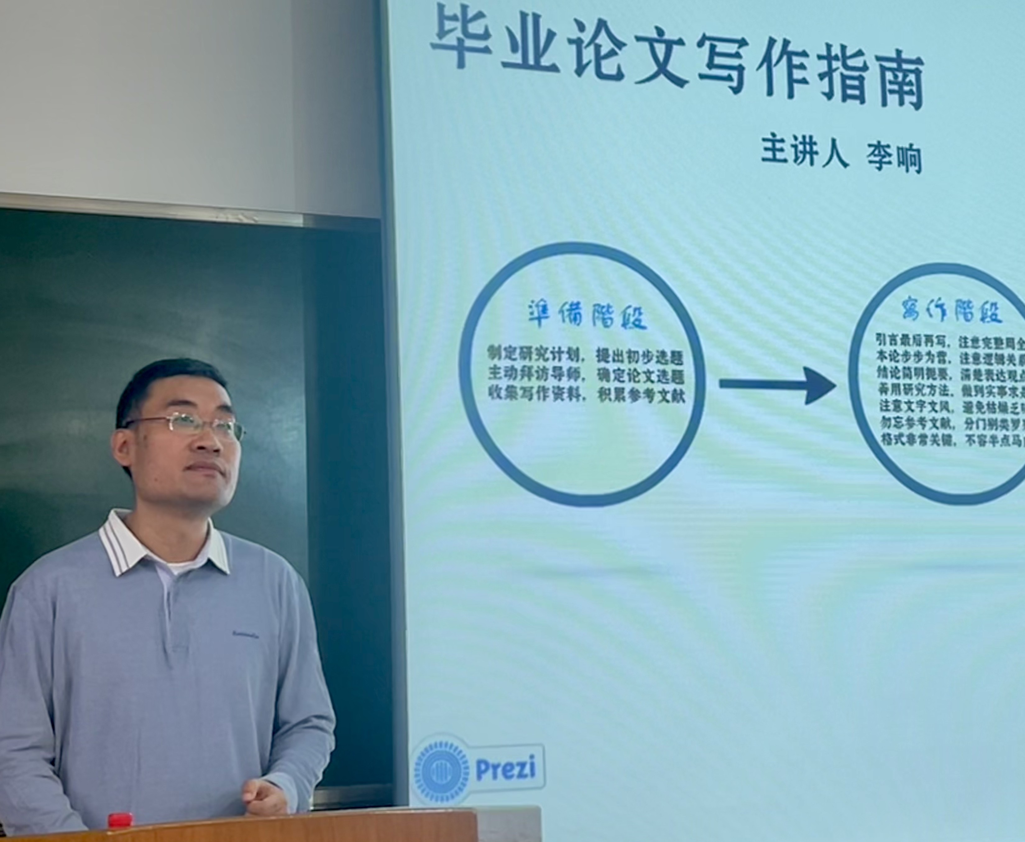 课程伊始,李响指出,学位论文的撰写要“以规范为纲,以创新为要”。在论文准备阶段,他强调学生应扎实完成研究计划,审慎规划研究路径,并对研究的可行性进行全面评估。他还特别提醒学生应充分运用导师指导机制,定期主动与导师面谈确定选题,并在整个写作过程中与导师保持紧密联系。“题好一半文”,题目新颖、文题相符、大小适当,是选题成功的三个标志。另外,丰富和权威的文献资料也是论文写作的重要基石,学生应在写作前广泛检索阅读、耐心收集整理、仔细反思沉淀,切勿仓促动笔。