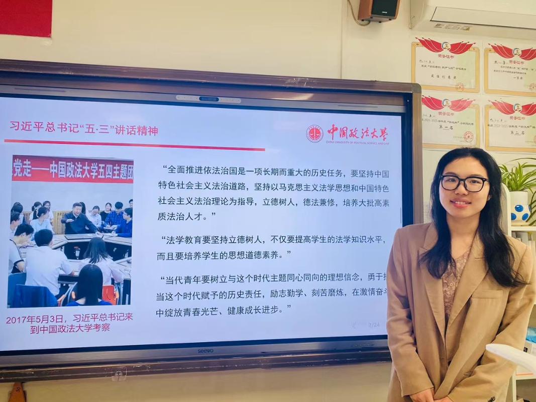 4月21日,刑事司法学院“明法之光”宣讲团首次开讲,成员郑茹倩为东交民巷小学六年级三班的同学们系统讲授了习近平法治思想的重要论述和核心要义,深入学习了习近平总书记视察我校“五·三”重要讲话精神,为学生们带来了一堂生动的法治思政课。