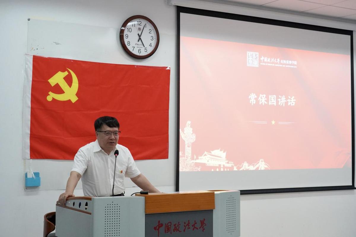 院长常保国讲话。他指出,深入贯彻中央八项规定精神,纪检监察学院责任重大,使命光荣,学院师生要围绕习近平总书记关于加强党的作风建设的重要论述等,加强学习研究和理论阐释,为廉政建设和社会治理贡献智慧力量。
