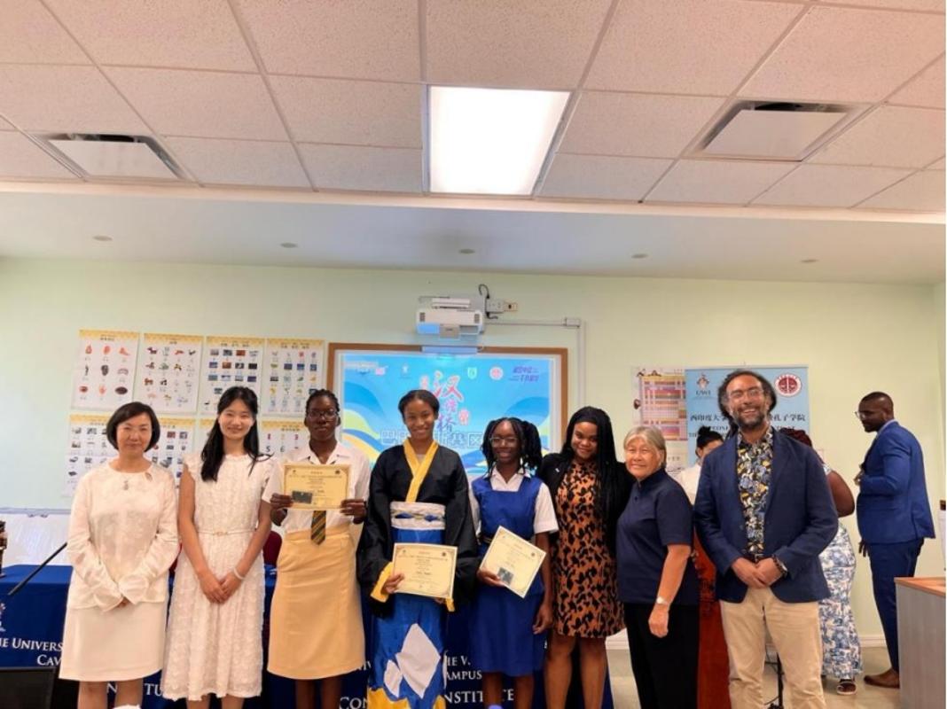 当地时间5月28日,我校共建巴巴多斯西印度大学凯夫希尔分校孔子学院(以下简称“巴巴多斯孔院”)成功举办第二十四届“汉语桥”世界大学生中文比赛(巴巴多斯赛区)、第十八届“汉语桥”世界中学生中文比赛(巴巴多斯赛区)和第五届“汉语桥”世界小学生中文秀预选赛(巴巴多斯赛区)。本届比赛参赛人数创下历史新高,经过预选,共有15名小学组参赛者,10名中学组参赛者,2名大学组参赛者进入预选赛。比赛由孔院本土教师爱乐(Alexandria Payne)主持。
