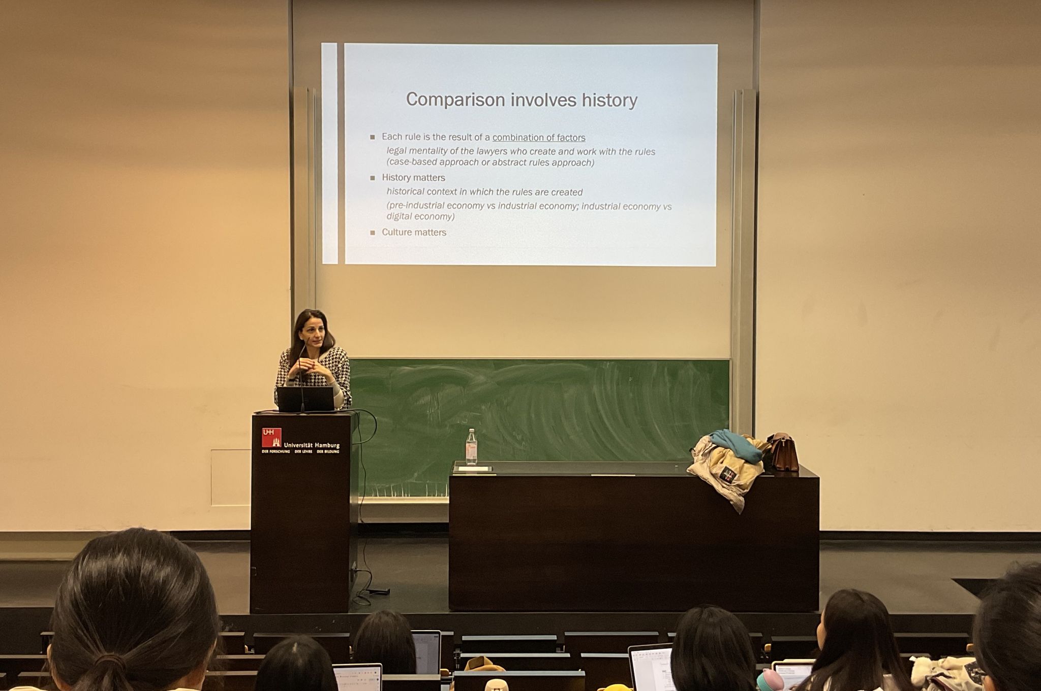 汉堡大学以星期为周期的快节奏课程进度,让我深感预习的重要性——若无提前准备,很难在一周结束后对大量的课程内容产生系统认知。一学期的课程总量又实在算不上轻盈,这对我们的中期、期末梳理复盘能力又是一重考验。不过,在预习与复习之间,我也享受来自各国的同学们共同创造的活跃课堂氛围,不同的教育背景碰撞出多样的思维火花,教授们也倾向于先肯定、鼓励同学的想法,再深入分析,这样的授课方式也引导着我进行深度思考和积极参与课堂。除了必修课外,汉堡大学还将同学分组并配备助教老师,助教会根据每个单元的课程内容,进行小班化、针对性的讲解和答疑,与教授的授课内容互为补充,帮助我们更好地消化知识。