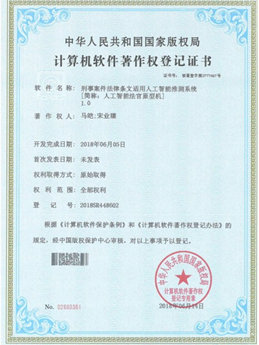 2018年6月14日,社会学院马皑教授及其指导的博士研究生宋业臻,完成计算机软件“审讯结果与审讯策略有效性人工智能预测系统”(审讯机器人)、“刑事案件法律条文适用人工智能推测系统”(机器法官),并取得国家计算机软件著作权登记证书。