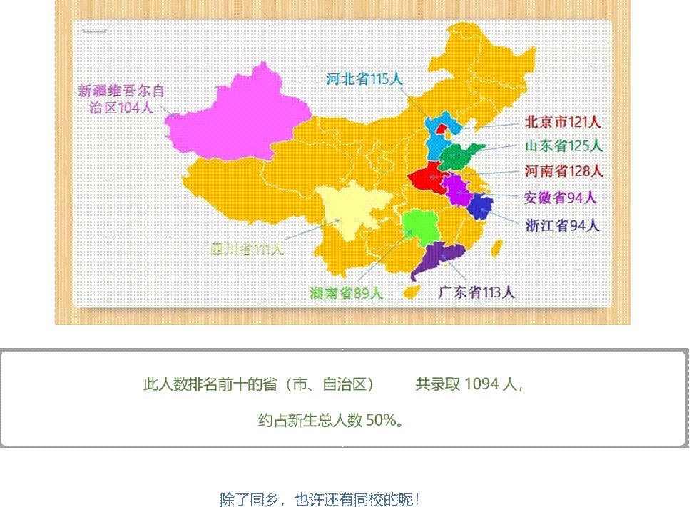 新生人数排名前十的省(市、自治区)依次为: