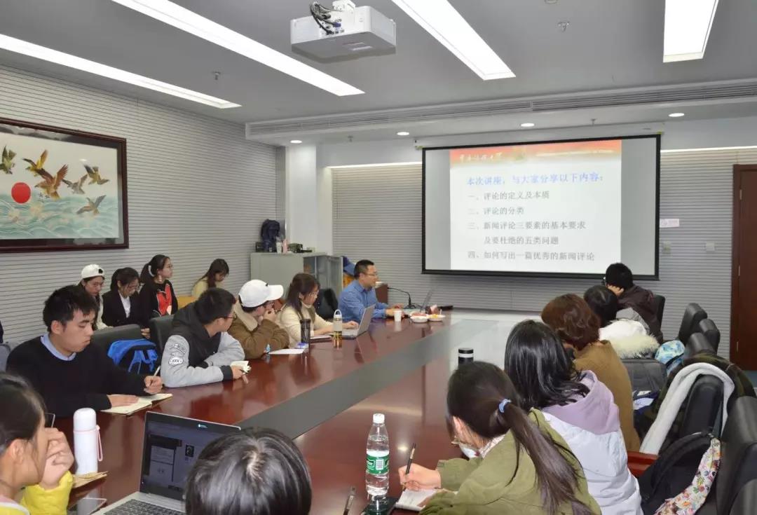 唐远清老师以当今社会自媒体快速发展为背景,从评论的定义和本质、评论类型、评论三要素基本内容和应杜绝的问题以及如何写出一篇优秀的新闻评论等四个方面展开了讲解。其中着重讲解了评论三要素基本内容和应杜绝的问题以及如何写出一篇优秀的新闻评论。评论三要素分别是论点、论据和论证。论点应具有理论明确、公平公正、新颖独到等特点,并提出论据应真实可信和有说服力的要求。唐老师又针对今年自媒体报道弊病提出应杜绝权威论证、情感论证等论证谬误。然后唐远清老师又从想--思考、说--表达两个方面指导同学们学习写出一篇全面深入、新颖理性的新闻评论,唐老师鼓励同学们积极进行采、写、编、评一体化训练,将理论学习与评论写作实践相结合,在日常阅评评论文章并向优秀撰稿人学习。同时指出形成成熟思想以及积极参与舆论热点话题是提高新闻工作能力的重要环节。最后唐老师耐心解答了同学们关于社会舆论、言论自由、新闻媒体人同理心、论点鲜明的问题,并就最近诸如重庆大巴坠江事件舆论翻转等社会热点问题分条析理,为同学们揭开新闻舆论的层层迷雾。经过唐远清老师的讲解,在座同学对新闻评论有了更为深切著白的认识,并表示对未来写作大有裨益。