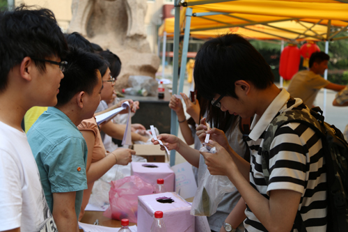 端午节前一天,拓荒牛前的“花灯会友人——端午灯谜会”活动现场分外热闹,经过的人都情不自禁地停步在那充满古韵的“猜灯谜”展台前。学社成员一会儿耐心地为同学做出有关灯谜答案的提示,一会儿又用手仔细地去整理下被风吹乱的写有灯谜的纸条,一会儿又微笑着将粽子递给猜对灯谜的同学,活动现场清香的粽子、手工制作的香囊、美丽的七彩线带给大家一种芳香悠远的腼怀之感。一位参与猜灯谜活动的同学说道:“这种通过猜灯谜来来弘扬传统文化的方式很有趣,我们在享受赢得粽子等奖品的愉悦感时,也了解到了许多端午节的传统习俗。”