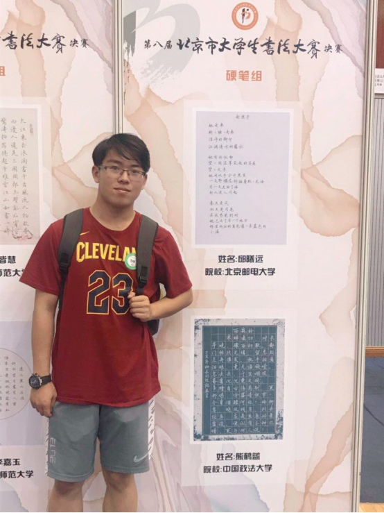 本次大赛硬笔组初赛共92人参加,仅10人入围决赛,入围比例为所有组别中最低的一组,而且与软笔组不同,硬笔组选手不分专业、非专业,所有参赛者需同场较量,因此竞争十分激烈。此外,硬笔组仅有定题书写比赛环节,难度非常高,对选手的能力和心态是极大的考验。熊鹤蓝作为首次参赛的大一选手,保持了平和的心态,在一小时的定题书写环节中,克服了参赛经验缺乏、选题限制较多等方面的种种困难,作品完成得十分出色,最终获得三等奖的成绩。赛后,熊鹤蓝总结经验,期待继续在专业老师的指导下进行书法学习,对以后的创作充满信心。