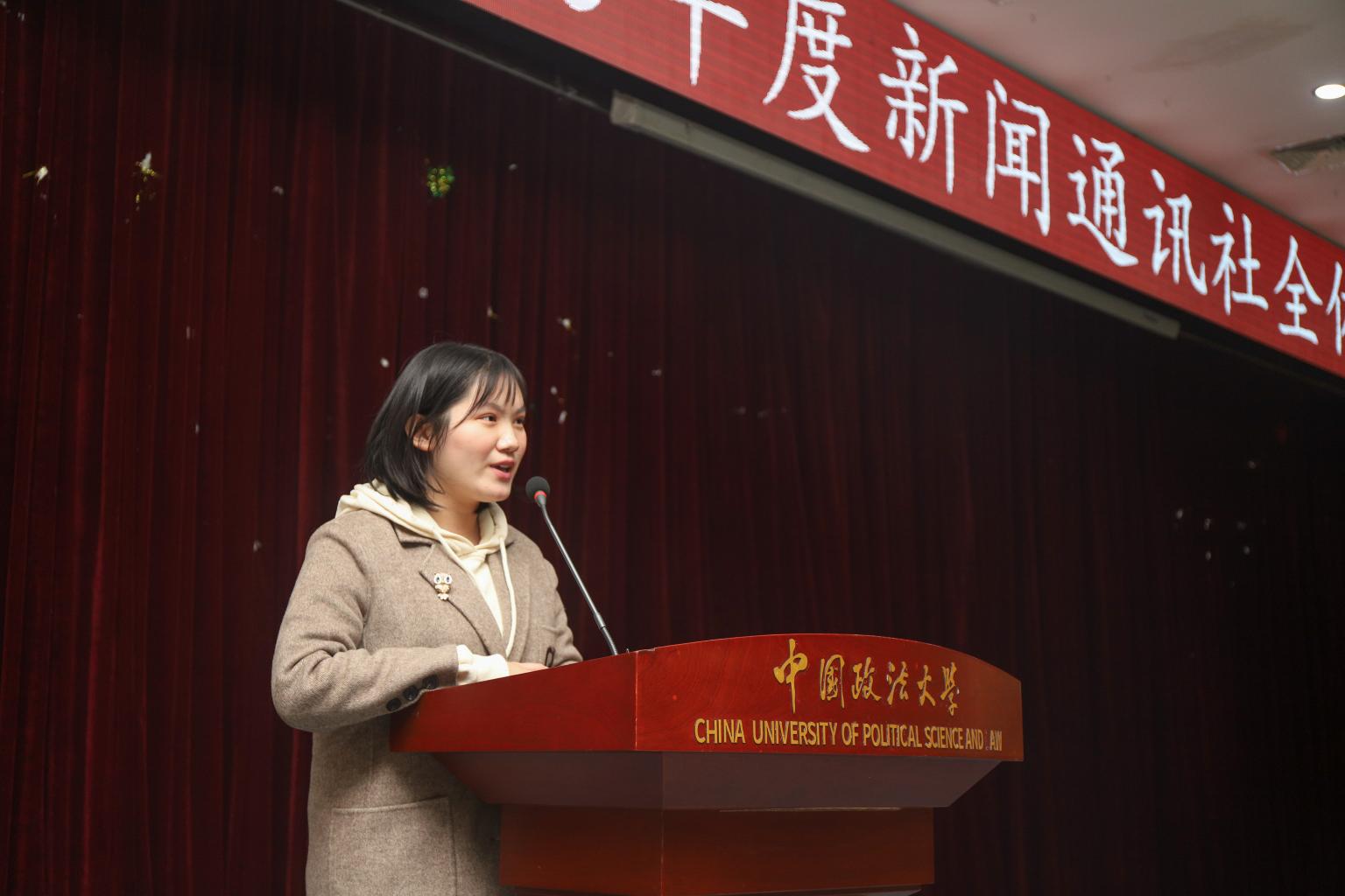 新闻通讯社通讯员代表王凡用“潮去潮又来”比喻新旧社员的注入与更新,希望新社员们不仅做“浪花”更要做“水手”,与师兄师姐一起将“法大人”的情怀传播。