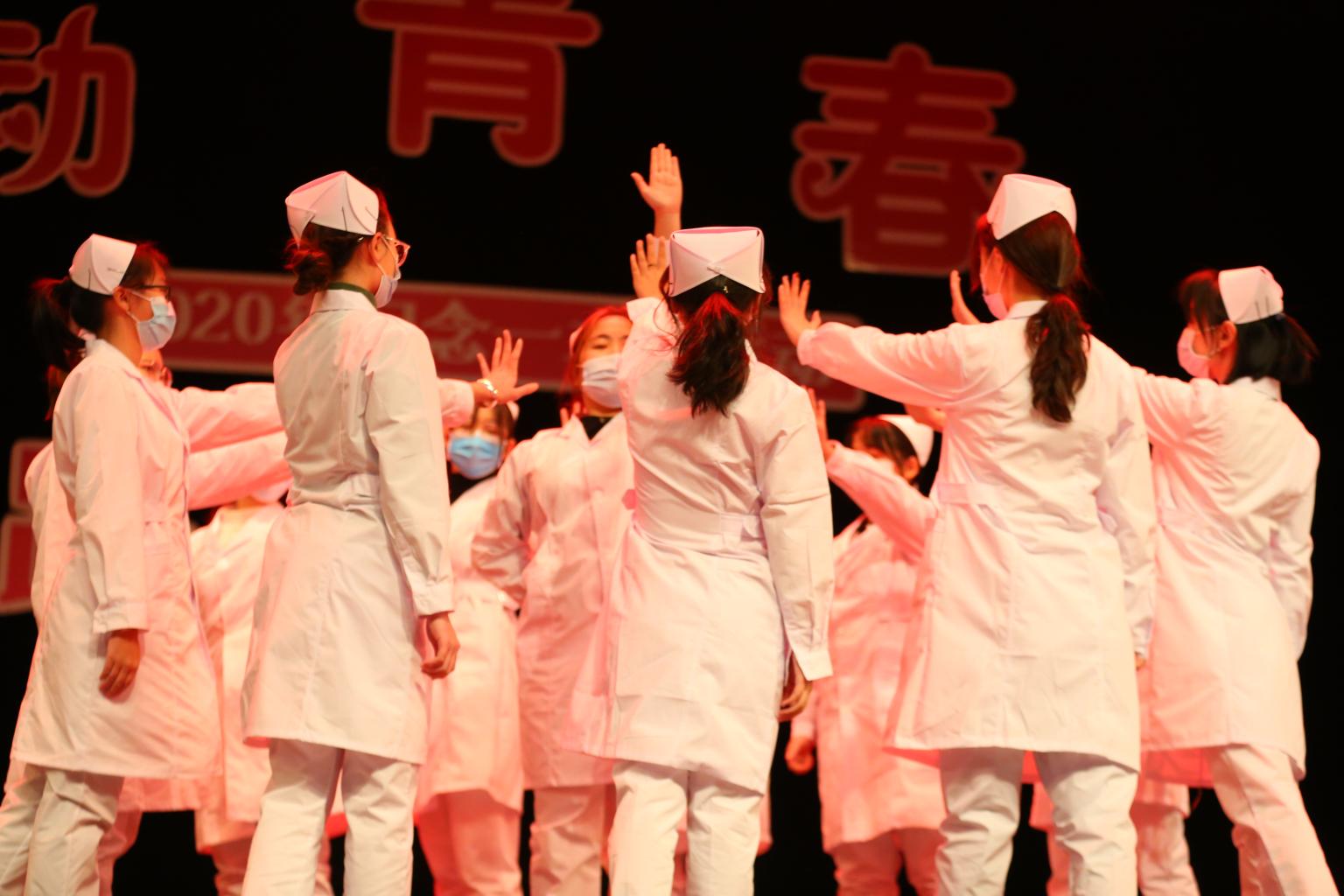 法治信息管理学院信息2001团支部带来的《青年与祖国》在表演中加入了少数民族音乐选段的表演,热烈欢快地传递出青年学生及各族儿女对祖国的热爱。16时许,第三篇章“抗疫·看大义担当”拉开了帷幕。由国际法学院2003团支部、2004团支部带来的《初心·传承》,用象征中华民族精神的红绸,串联起了疫情期间的感人故事。随后,由法学院2001团支部、2003团支部带来的《医者》,用旁白串联起古典舞、现代舞和街舞的形式,再现了“生命至上、不求回报”的医者精神从古至今的传承。商学院经济2001团支部、工商管理2002团支部和国际商务2002团支部联合带来的《春暖花开》,在清澈的童声中用柔美的动作展现出医者的无私大爱。
