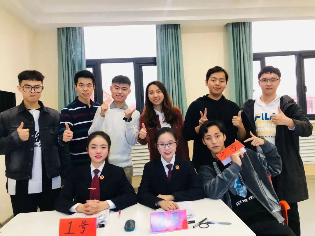 在深红色木质的桌椅前,在庄严肃穆的国徽下,佟泽鸿和队友并肩而战。逻辑清晰、慷慨激昂的发言是他们日夜努力后的呈现,走庭、写文书、练习讯问,两个多月的训练在赛场上得到了最好的回报。