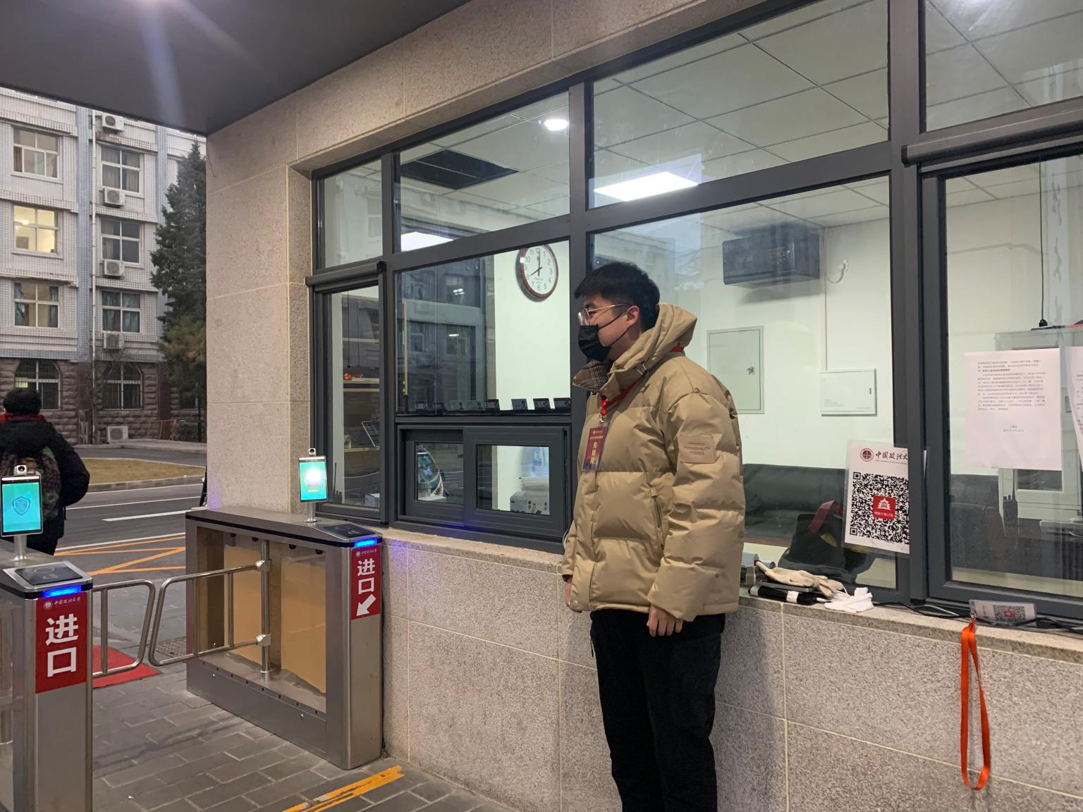 12月23日2020级马克思主义学院硕士研究生刘清源体验东门保卫处的志愿岗位。刘清源说:“我负责的主要内容是监督师生扫码测温,同时,如果门禁的机器偶尔发生故障,也要在第一时间核实师生的相关证件后,打开门禁,保障大家的顺利通行。”刘清源认为作为一名政法学子来说,参加学校志愿岗位,是希望以自己的绵薄之力为学校建设贡献自己的一份力量,另外,在参加志愿活动的同时,也可以使自身社会能力得到提高。