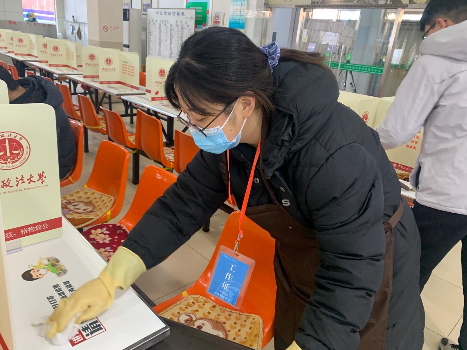 2020级行政管理专业的硕士研究生王文瑜在12月26日是担任食堂保洁工作,她的工作内容是比较辛苦的,主要是在午饭时间协助食堂阿姨进行收餐工作。当问及为什么选择来参加这个志愿岗位,王文瑜同学说道:“希望通过志愿活动认识学校的后勤保障工作如何运转,同时增强自己的劳动意识。”在体验完这份工作岗位时,她觉得虽然比较的辛苦要不怕脏,但时又收获了很多。“我报名的是食堂保洁岗位,通过短暂的收餐工作,我体会到食堂叔叔阿姨为保障师生的用餐环境做出了很多努力,他们的付出的劳动值得我们尊重。”王文瑜说。