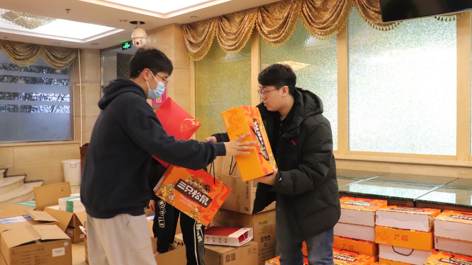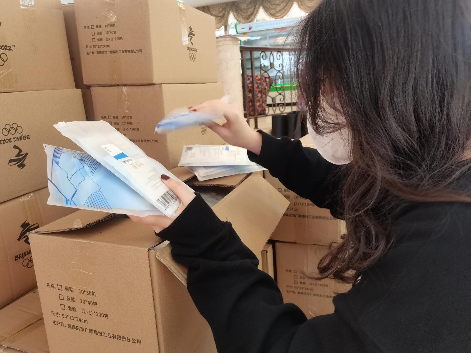 如果说驻地是志愿者们的“大后方”,那么鸟巢就是志愿者们的“战场”。由于最初的设计和建设是作为夏季竞赛场馆,鸟巢有着优良的通风性能,这也让它在冬末春初更显寒风凛凛。母洺宇作为负责为志愿者准备餐食、防寒物品的保障团队一员,一度为了挑选防寒暖贴操碎了心。“有同学反应暖贴不够暖的时候,我就很担心大家会冻感冒,”他不放心只根据商品描述来挑选,跑到商店,每一款暖贴都买了一份,和后勤保障的同学们一起亲自贴在身上测验发热的时长和温度是否能符合进场服务同学们的需求。经过对比,母洺宇最终确定了最合适的暖贴品牌,又加购了暖足贴,并提前向店家订货,确保志愿者进场时能有充足的暖贴御寒。“一定要给咱们质量最好的啊,不能让咱们志愿者冻着。”母洺宇总是反复叮嘱店家。每次志愿者出发拎上餐包后,他总要再叮嘱一次,上车后记得领口罩、暖宝宝和暖足贴,准备了热水可以倒去喝……“保障工作没有什么严谨、高难度的技术要求,但是关系到同学们的切身需求,就要反复提醒、反复确认,要让大家感受到,我们永远在关注大家、给大家温暖。”