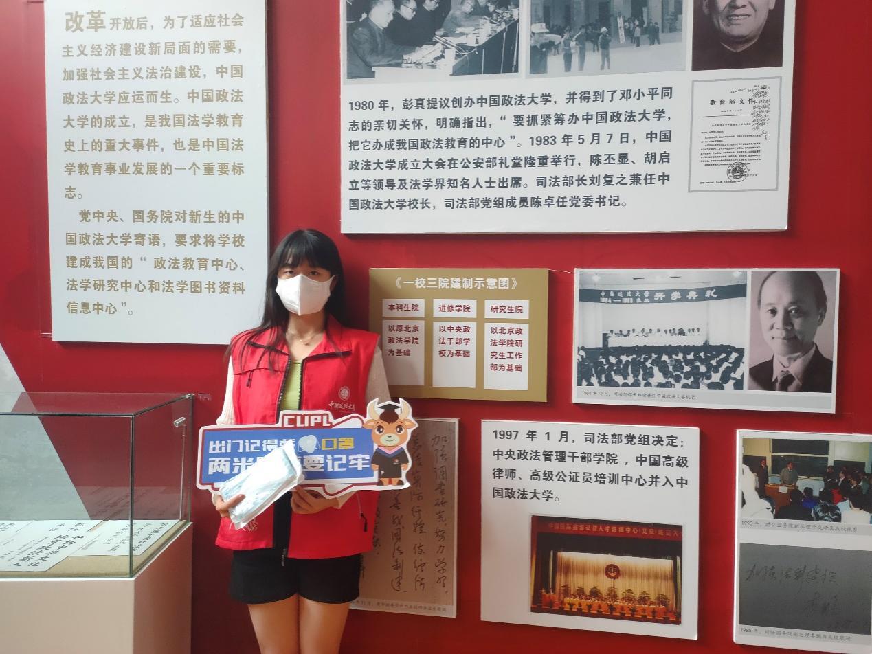 在教学楼内,总有同学会摘下口罩,这时“青年先锋”们便会细心提醒同学记得佩戴口罩。法学院的章舒亭同学说巡楼于她而言,是在全民抗疫大背景下很特殊也很光荣的一份使命。