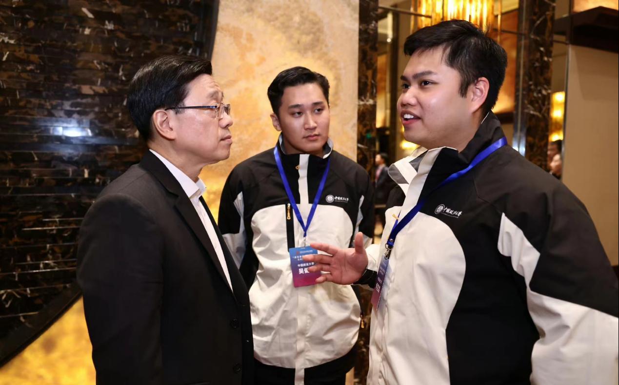 会后,我校两位同学有幸与李家超先生进行交流。他们表示,法大承担着推动中国法治建设的重要使命,多年来为两地输送不少法律人才,也培养出许多“爱国爱港”的香港青年。他们在法大“知法、懂法、守法”,很多同学立志于学成后投身香港法治事业,为维护香港长期的繁荣稳定、推动香港更好融入国家发展大局贡献绵薄之力。