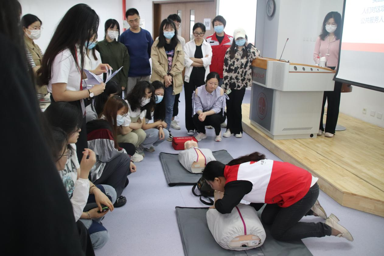 为深入学习二十大精神,贯彻健康中国的理念,建设平安的法大校园,充分发挥研究生在自我服务、自我教育、自我管理的作用,5月20日上午,“平安蓟门”研究生急救知识培训活动在教学图书综合楼举办。