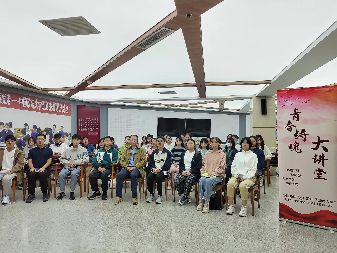 (雷磊与参加本期青春铸魂大讲堂的学生共同留念)