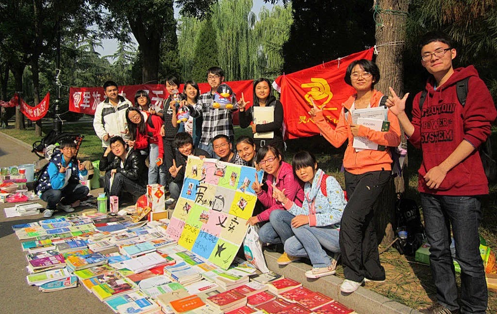 刚入学时,灵心会向新生发放图书义卖的海报,售卖收集到的教材和练习册,带给新生来自法大的第一份温暖。在社团招新季,总会有许多同学因为这份温暖慕名而来。