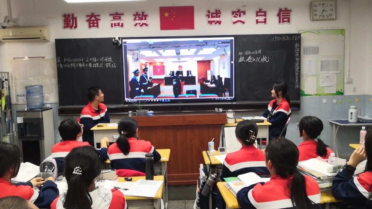 “请肃静!现在宣读法庭纪律……”2023年10月31日,随着“书记员”清晰有力的法庭纪律宣读声响起,第一百期“青少年法治课堂”——“拒绝校园暴力,青春向阳生长”在北师大昌平附中正式拉开帷幕。来自我校民商经济法学院的13名本科生各司其职,为现场的一百五十余名中学生高度还原了严肃有序的庭审现场。