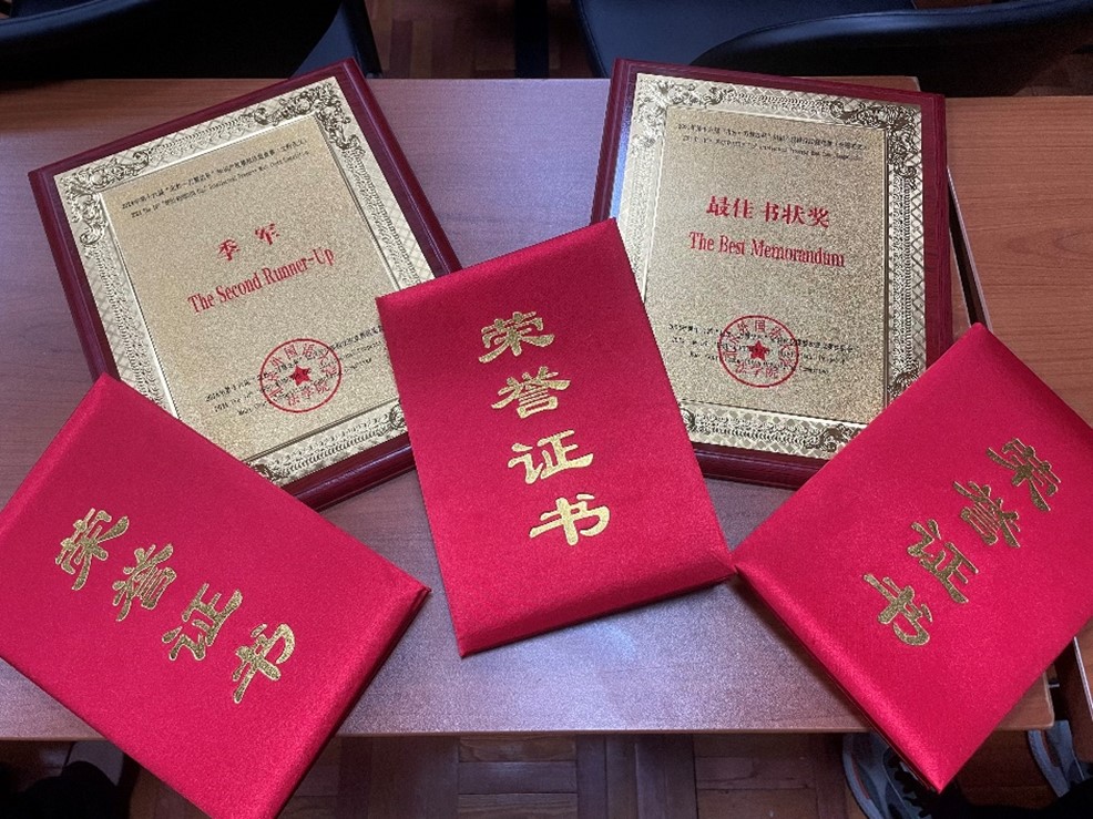 今年,我校代表队由民商经济法学院2021级本科生王文馨、国际法学院2021级本科生阮婧研、刑事司法学院2022级本科生孙沐风、民商经济法学院2021级本科生孔艺陶组成,由国际法学院教师周一帆、李伯轩担任指导教师。往届队员宫铭彤、杨思齐、黄泽裔在备赛过程中提供了悉心指导。