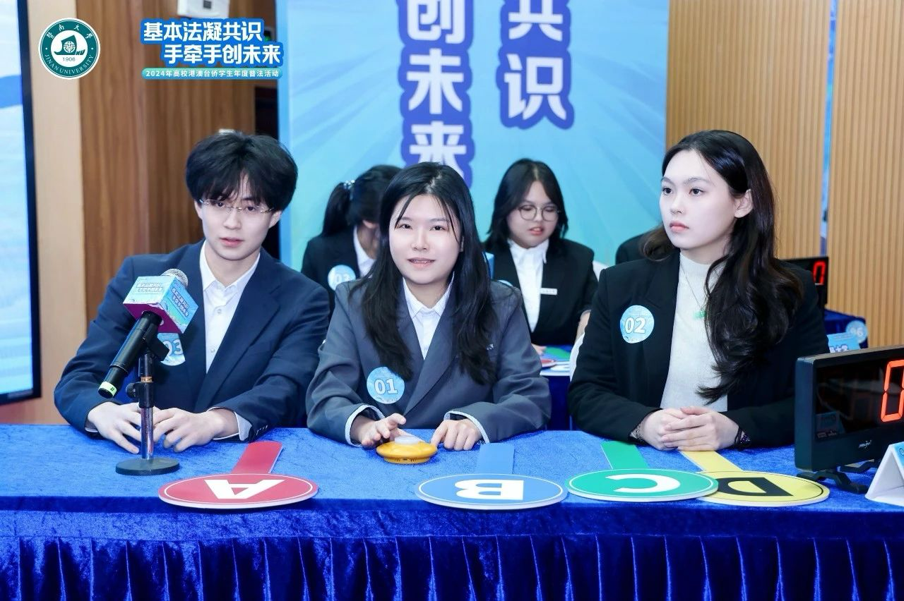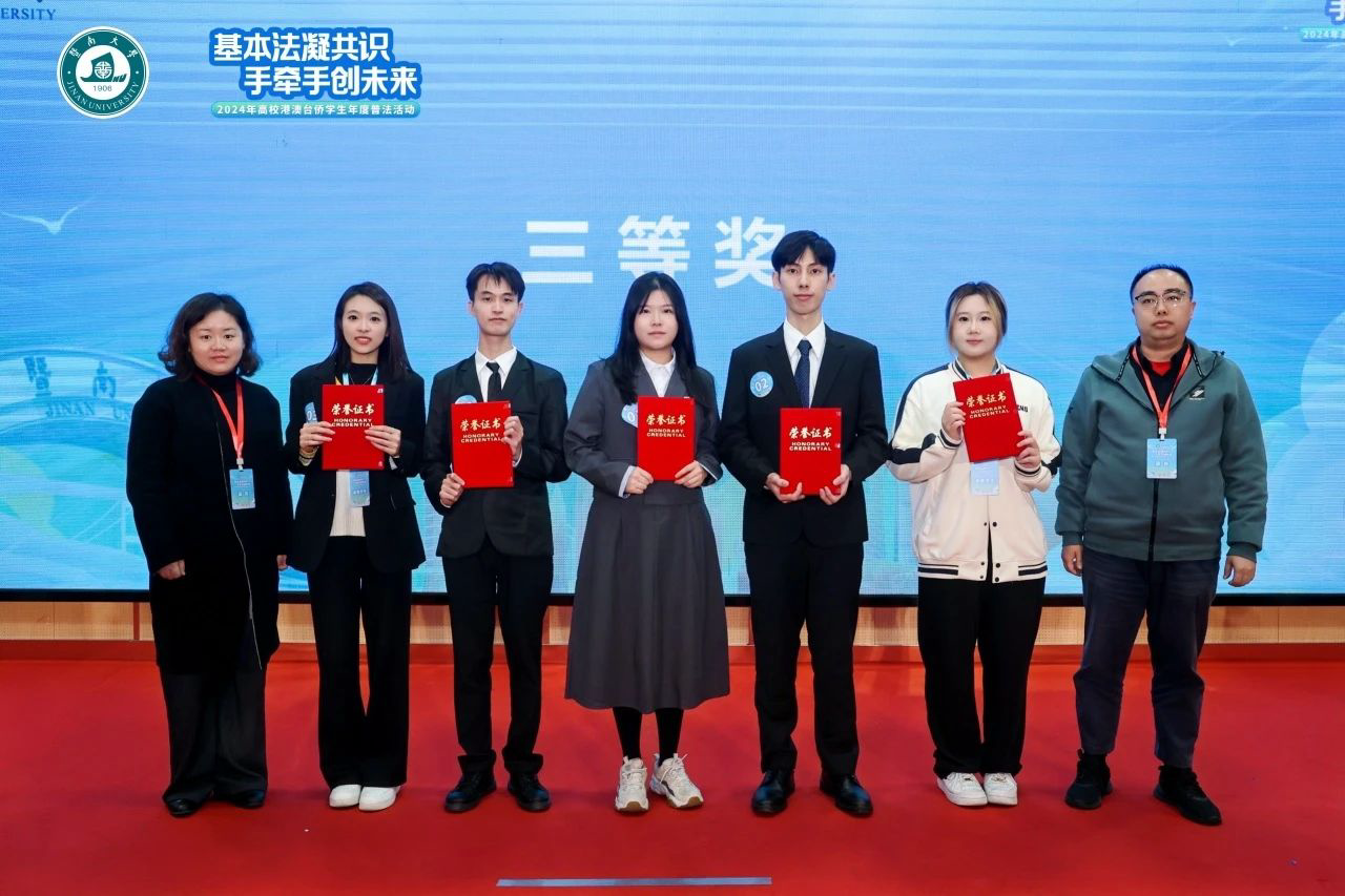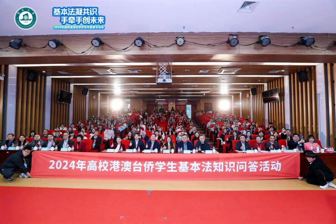 12月16日,由教育部港澳台事务办公室、中央人民政府驻香港特别行政区联络办公室广东联络部及中央人民政府驻澳门特别行政区联络办公室广东联络部指导,广东省教育厅、中共广东省委港澳工作办公室支持,广东省高等教育学会港澳台侨学生管理研究分会主办,内地与港澳法学教育联盟粤港澳大湾区法学教育与人才培养联盟协办,暨南大学承办的“2024年高校港澳台侨学生年度普法活动”在暨南大学举行。