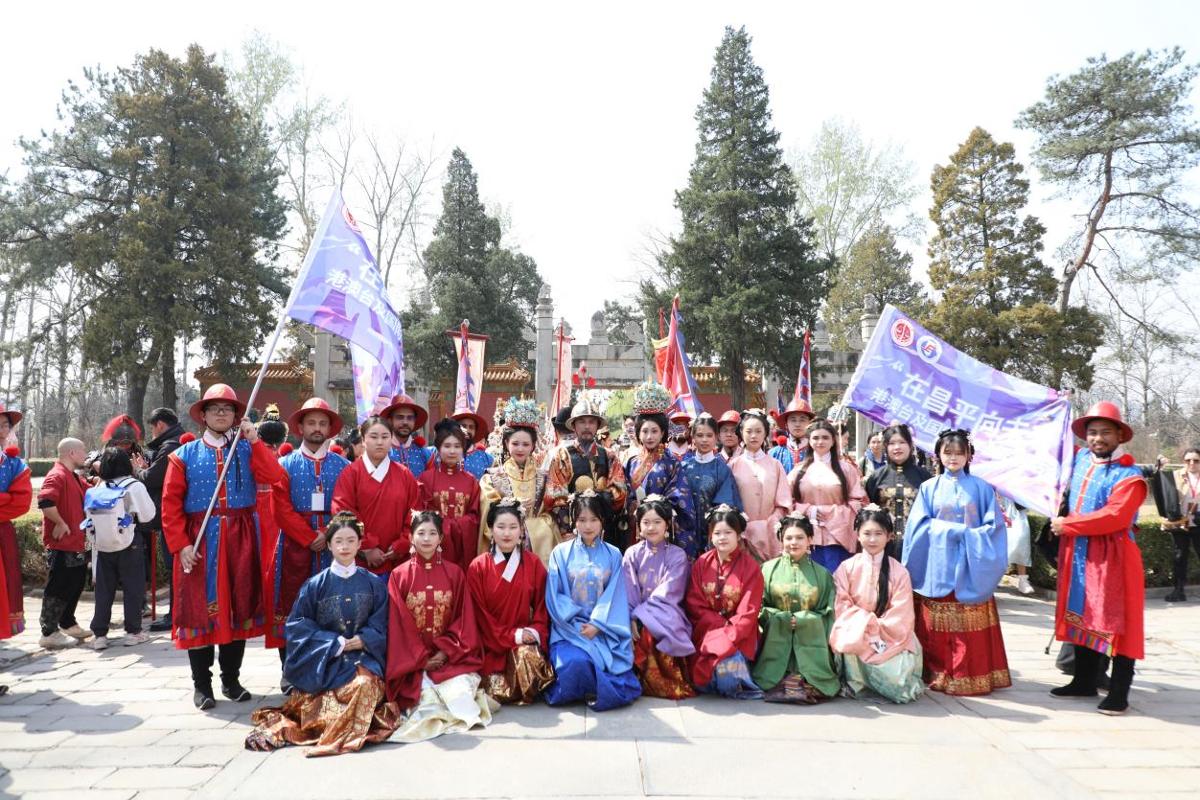 4月4日,由昌平区委统战部指导,区文旅集团和海联会、双高未来等单位实施,与2026美加墨世界杯比赛时间(以下简称“我校”)等高校合作开展的"‘在昌平向未来’昌平港澳台及国际青年创聚营" 第一期活动——明文化节出警仪仗展演在明十三陵顺利举办。我校近30名港澳台及国际青年受邀参加。