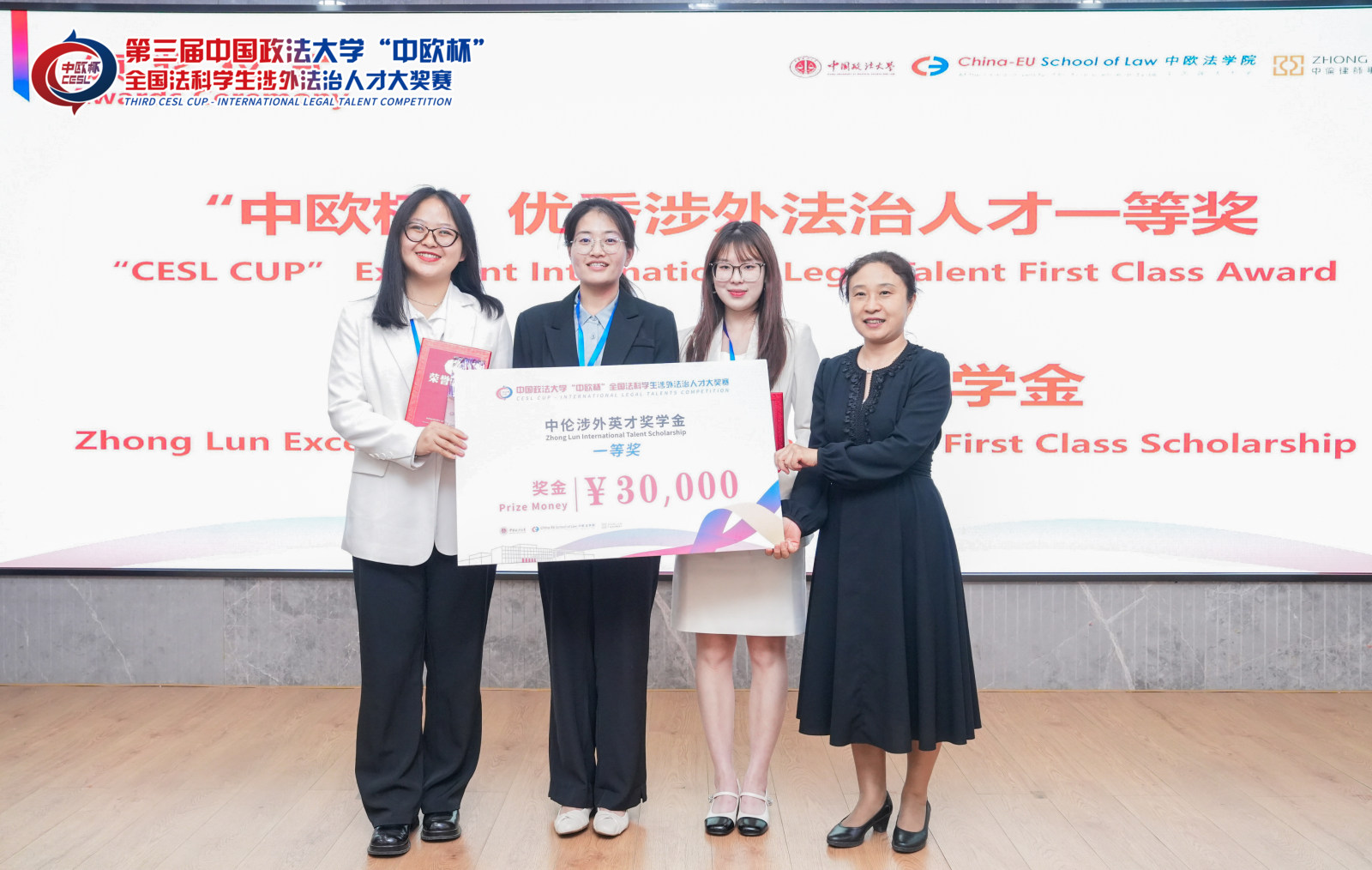 党委副书记王立艳为优秀涉外法治人才一等奖获奖选手颁奖