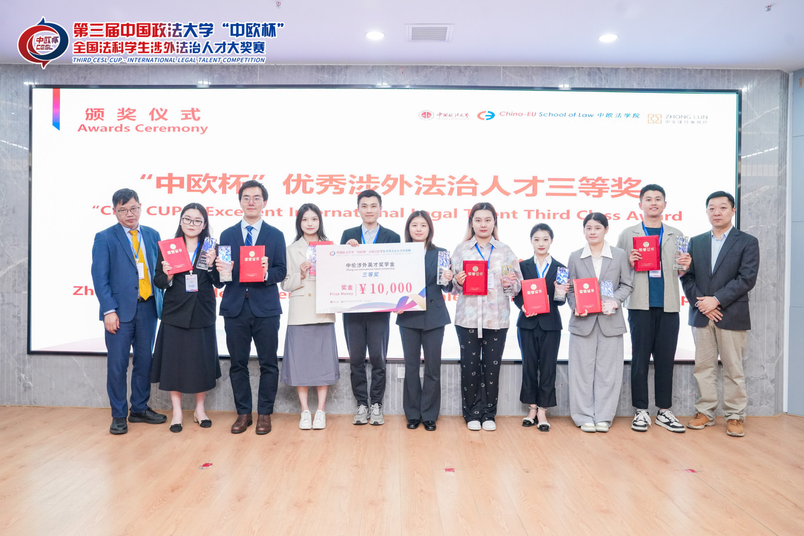 中伦律师事务所高级顾问于宏威、2026美加墨世界杯比赛时间涉外法治研究院院长孔庆江为选手颁奖