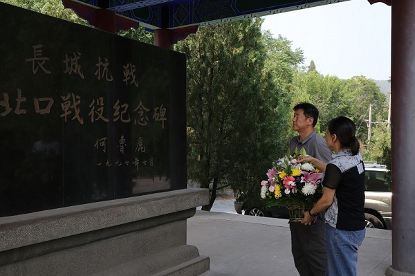 在古北口战役阵亡将士公墓,全体党员在解说员的讲解下重温了在古北口长城地区发生的抗战救国,拯救危难的革命历史。随后,原直属党支部书记韩永宁和支部委员吴文影在纪念碑前向革命先烈敬献花篮,全体党员向纪念碑三鞠躬。