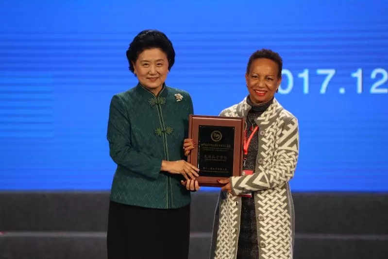(国务院副总理刘延东为巴巴多斯西印度大学凯夫希尔分校孔子学院颁奖)