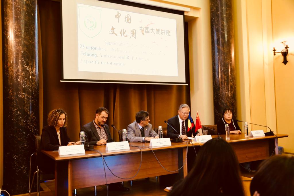 (中国驻罗马尼亚大使徐飞鸿出席布大孔院主办的“中国文化周”并应邀做中国专题讲座)