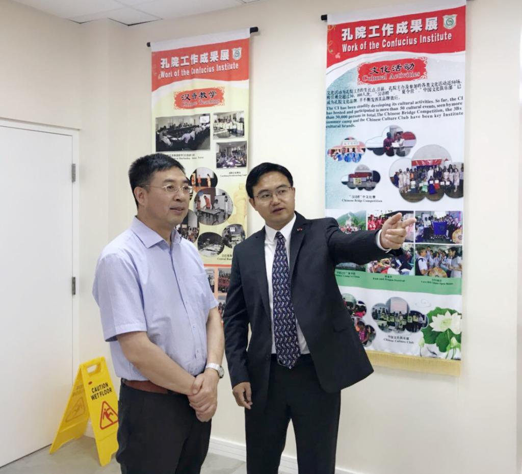 当地时间1月23日上午,中国驻巴巴多斯大使延秀生莅临我校共建西印度大学凯夫希尔分校孔子学院,了解孔院在巴开展工作情况,慰问孔院教师及志愿者,使馆政务参赞邹熹等陪同。