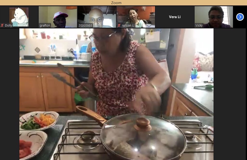 很多孔院的老朋友已经很久没有见面了,这是在巴巴多斯出现疫情封锁(Lockdown)后第一次见到,久别重逢的欣喜加上活动带来的欢愉,让整个活动自始至终都洋溢着欢乐的气氛。在这样一个特殊的时刻,美食是安慰,也是纽带。新颖的主题活动和直播形式,使大家更加直观地看到了食物的制作过程。大家在居家隔离之时,热热闹闹地过把瘾,身临其境地观看和学习了中华美食饺子和牙买加蒸鱼的制作过程。