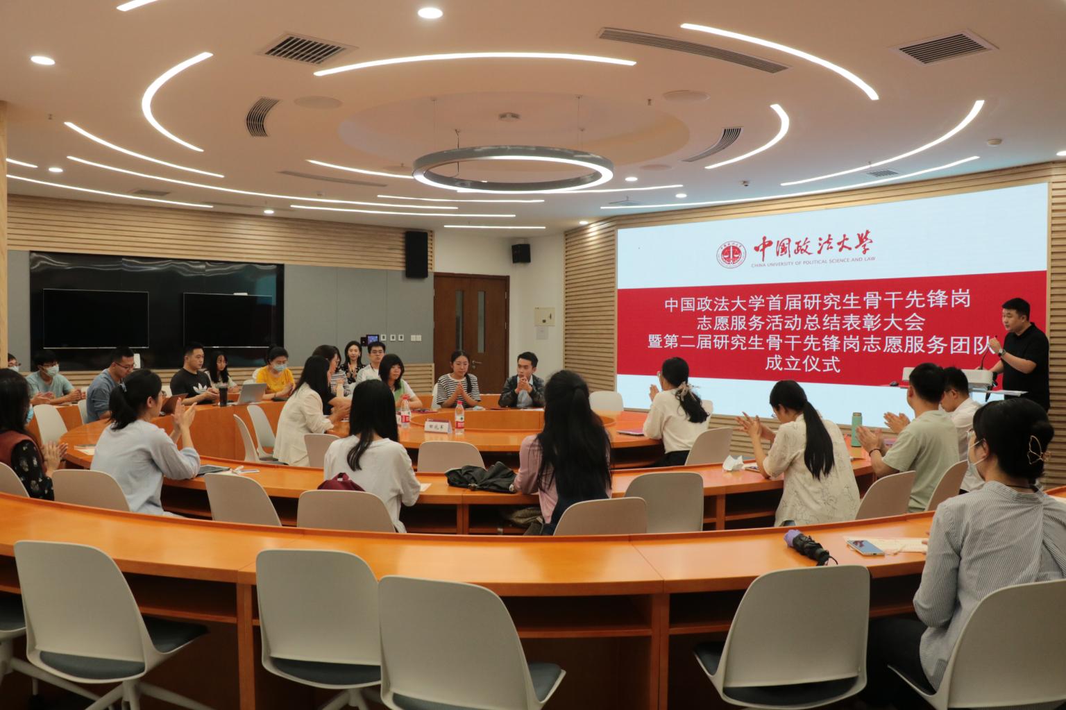 9月29日下午,我校举办的首届研究生骨干先锋岗志愿活动服务总结表彰大会暨第二届研究生骨干先锋岗志愿服务团队成立仪式在海淀校区举行。研究生工作办公室安朔、何佩璇,饮食服务中心主任李伟、海淀校区物业管理服务中心副主任乔鑫以及骨干先锋岗等40名研究生代表出席仪式。