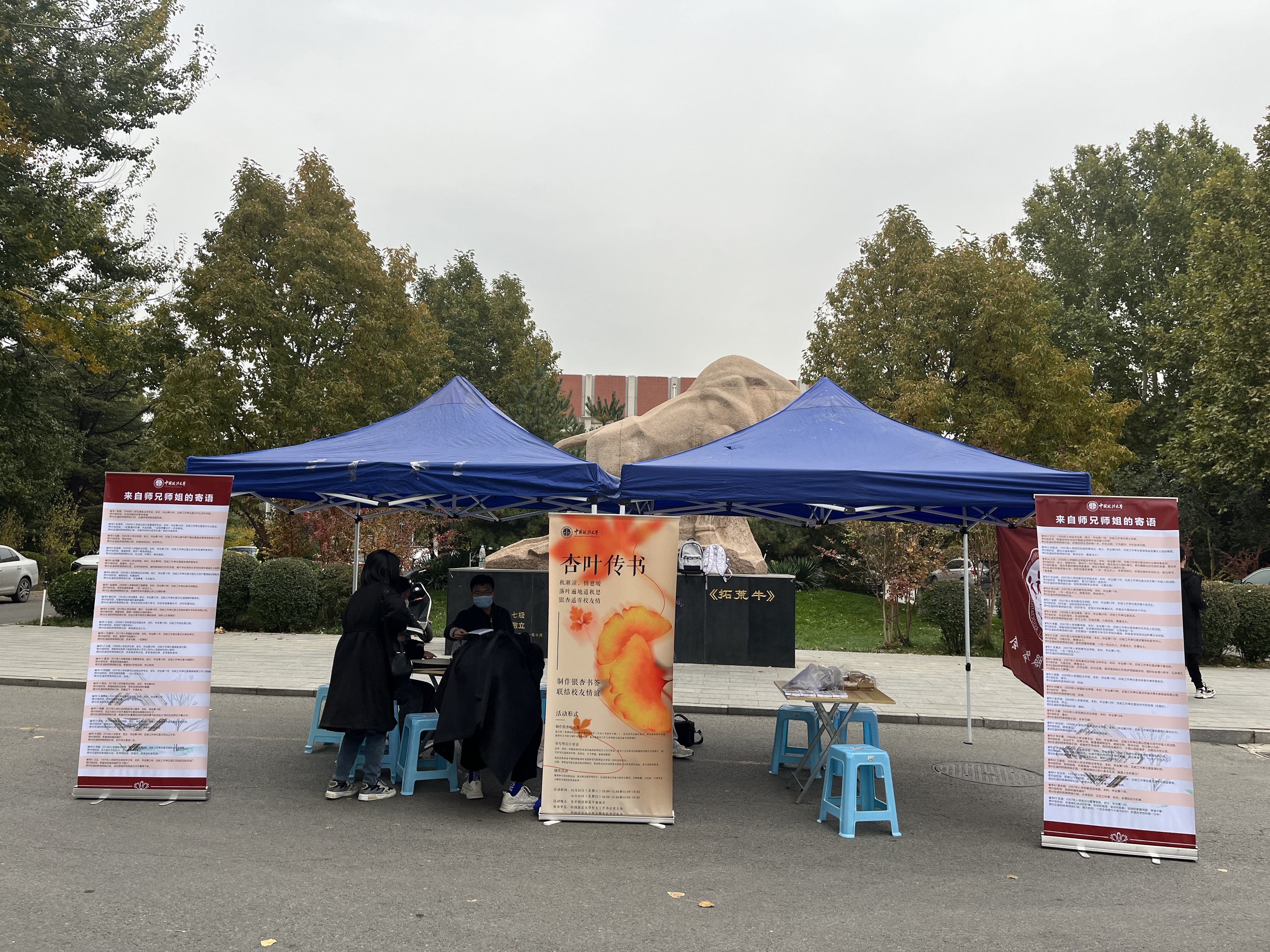 又见金风绣锦衫,一生炫彩最开颜。携学子情谊,寄法大情思。为凝练法大特色校友文化,加强学校与校友之间的联系,搭建校友和在校生情感沟通的桥梁,10月29日至30日,我校“杏叶传书”活动于海淀、昌平两校区举办。