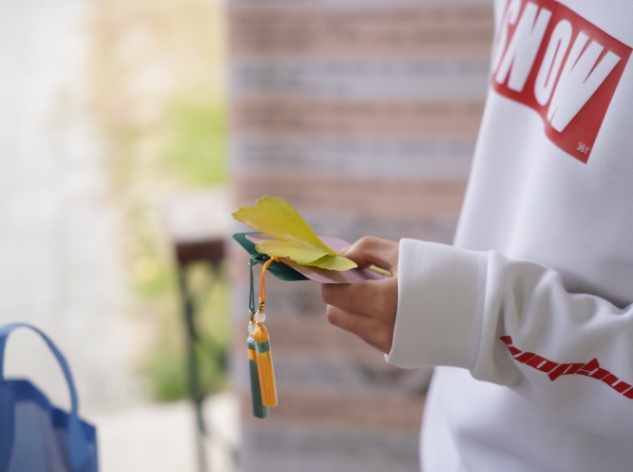 活动现场气氛热烈,学子们精心挑选金叶,全神贯注裁剪,亲手制作了银杏叶书签和留言明信片,并将诚挚的情谊倾注其中。怀着对校友们的敬意与祝福,学子们真诚地写下了自己的期许与问候,并盖上了学校的标志图章,将法大的秋和浓浓情谊定格在手上和心里。制作完成后,同学们看着自己精心设计的明信片,笑靥如花,并纷纷拍照合影留念。