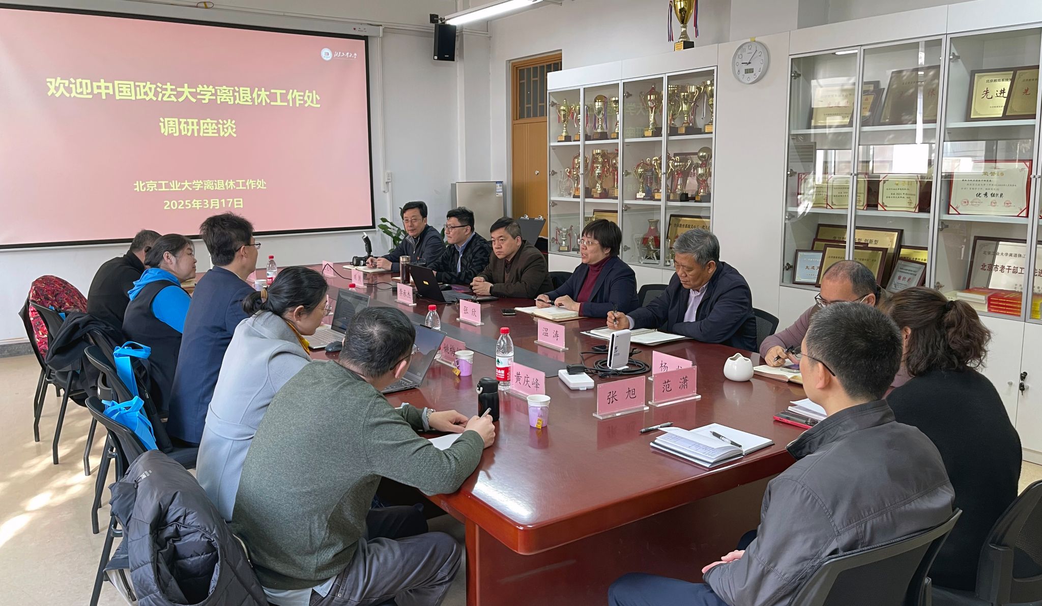 3月17日上午,我校离退休工作处赴北京工业大学开展调研交流,深入学习兄弟院校在离退休工作中的先进经验和做法。北京工业大学离退休工作处处长兼离休与机关退休干部党委书记张欣、正处级组织员温涛、副处长李承杰、刘剑,我校离退休干部党委书记、离退休工作处处长牛晓飞,副处长郑梓楠、姚梅娟及双方相关职能部门负责人围绕新时代离退休工作高质量发展进行了座谈交流。