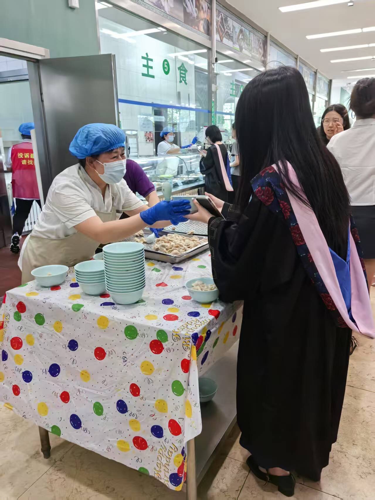 同时,二食堂二层窗口供应牛肉水饺,因其“骄子”谐音,成为特色美食,每份16个,寓意顺利圆满。此次活动共准备60厘米蛋糕10个、饺子16000余个,所有食材均经严格质检,确保安全美味。