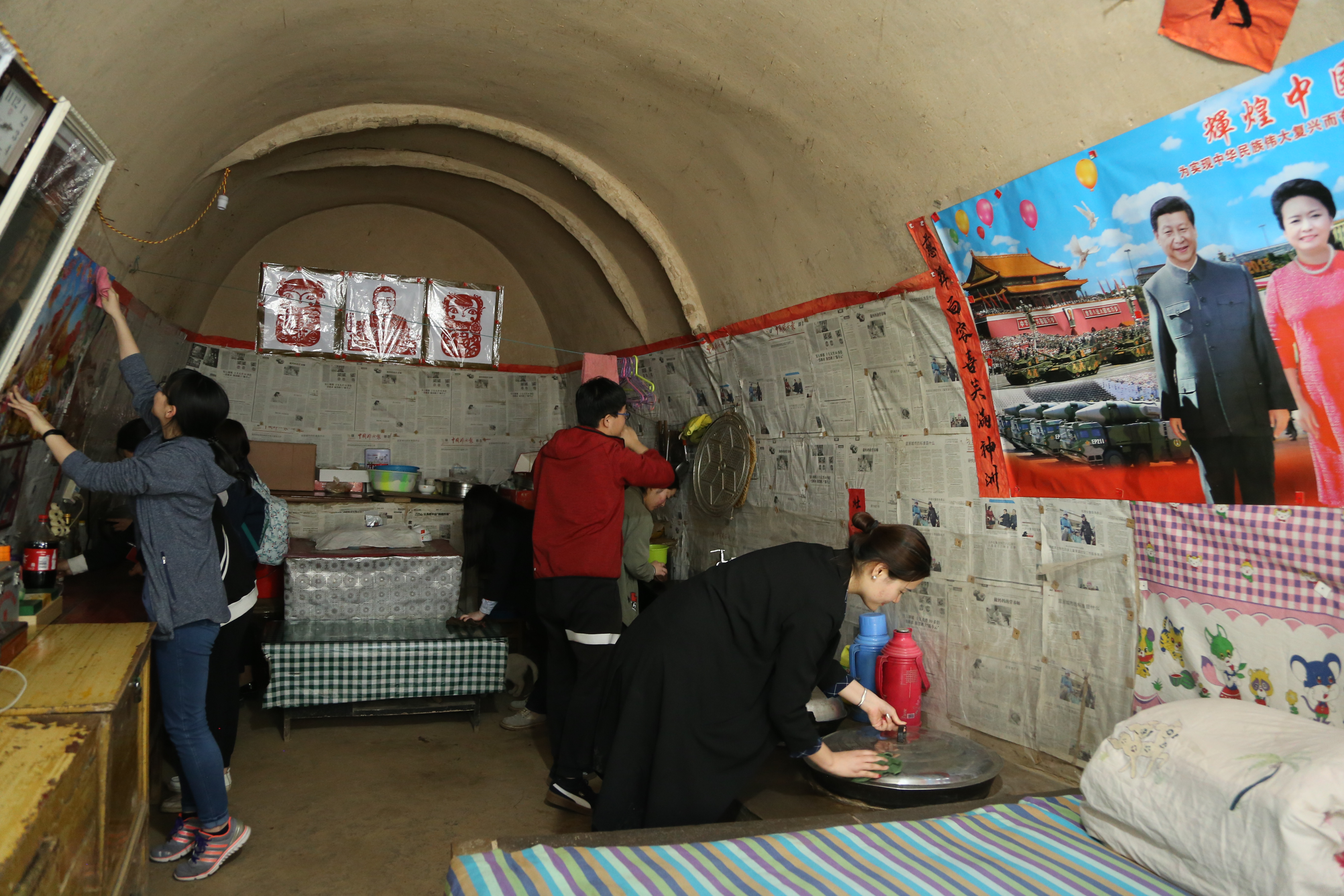学习参观结束后,同学们放下手中的笔和本子,清扫着窑洞内的卫生,用脸盆接上水,撸起袖子,拿起抹布,擦拭着老窑洞内的柜子、相框、桌椅、土炕上覆盖的尘土,再一次仔细看着一件件充满历史记忆的展品,用心感受着总书记的七年知青岁月。在劳动中,1502班团支部的同学们表示:“虽然已经看了《习近平的七年知青岁月》这本书,一天的实地学习仍然让我十分震撼,总书记在我们这个年龄的时候,开始担任大队书记,就在为群众办实事,这么艰苦还不忘读书和思考,回想起总书记在团日活动上的亲切话语,我们真的需要更加努力。今天,我们也想用这些简单的劳动,为梁家河村做点力所能及的事儿,向总书记的七年知青岁月致敬。”