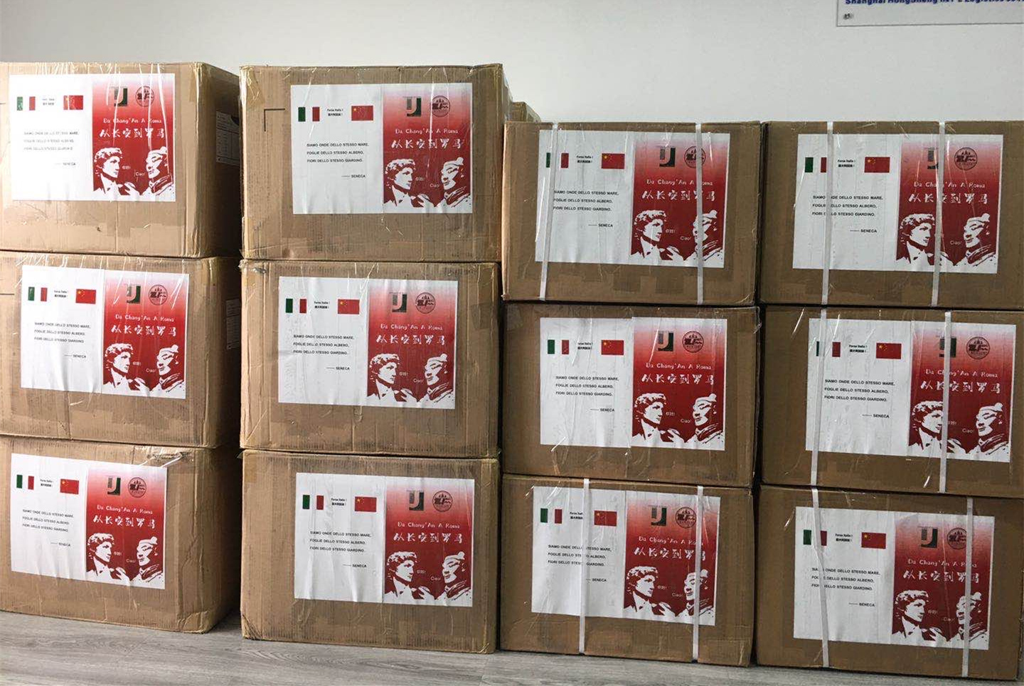 此次捐赠物资为医用外科口罩15000余个、N95口罩5000个以及防护服480件,受赠方为罗马第二大学医院及罗马第二大学法学院、罗马第一大学法学院、博洛尼亚大学法学院和比萨圣安娜高等师范的教师们。目前,这批物资已全部运抵罗马,由罗马二大接收并转交至受赠方。