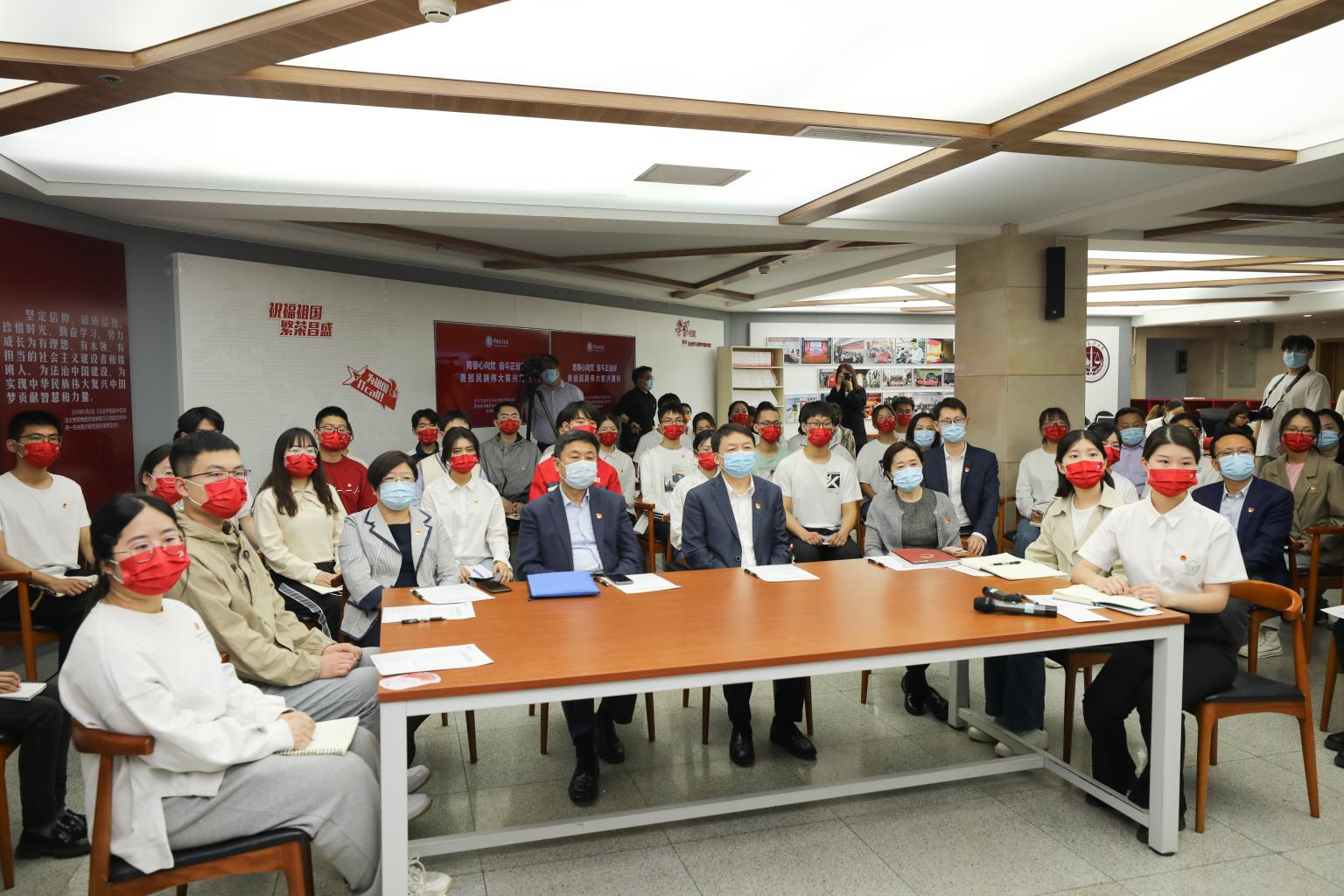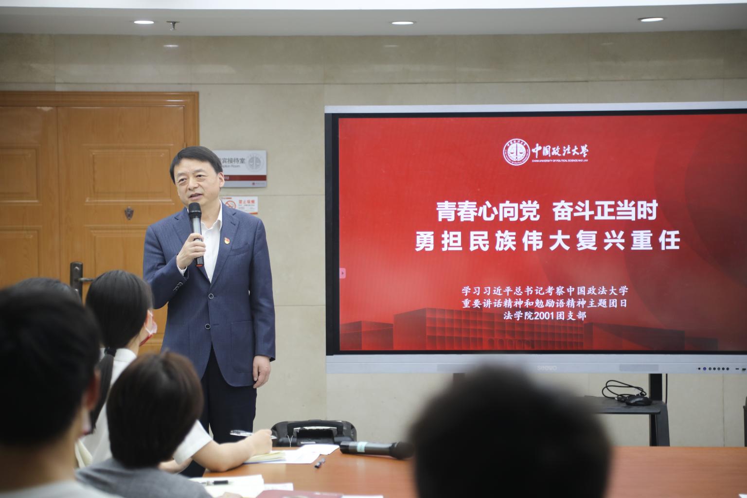马怀德认真聆听师生们的发言,并与他们交流学习心得。他表示,当代青年生逢其时、重任在肩。今年是习近平总书记考察法大五周年,也正值中国共青团成立一百周年、法大建校七十周年。在这一重要时代契机中,希望法大的青年学子们牢记总书记“立大志、做大事”的嘱托,紧握“接力棒”,坚定理想信念,厚植家国情怀,争做堪当重任的时代新人,为建设法治中国、实现中华民族伟大复兴而努力奋斗。