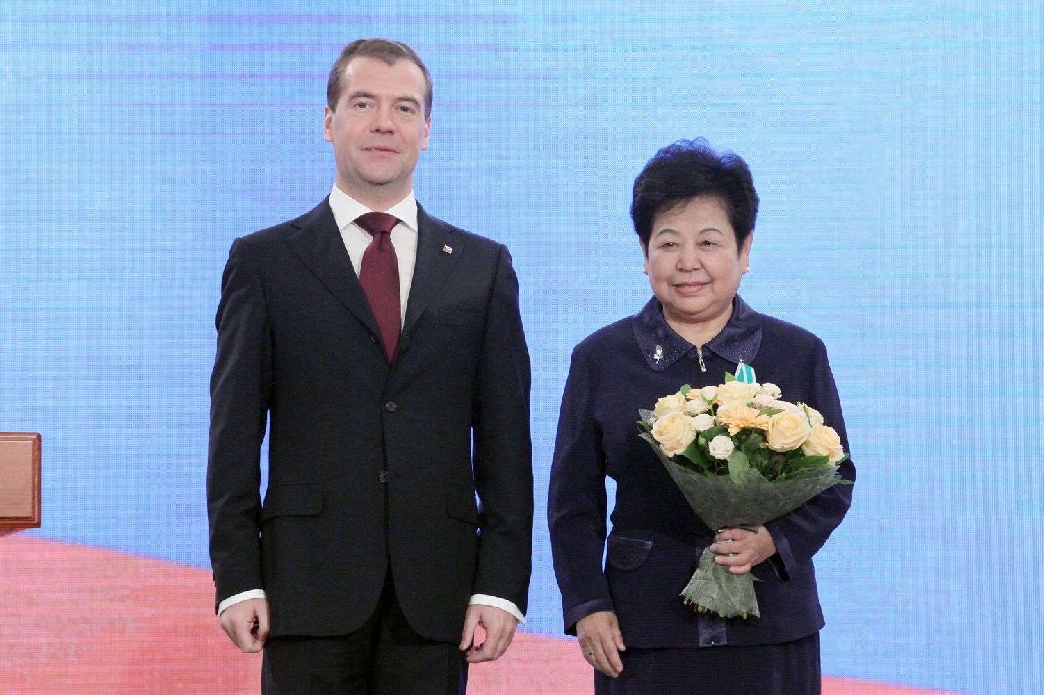 (3)图片1-2-4-1 :我校黄道秀教授翻译出版了逾千万字的俄罗斯法律文献,被誉为中俄法律研究和中俄法律交流“第一人”,俄罗斯总统梅德韦杰夫亲自为黄道秀授予友谊勋章