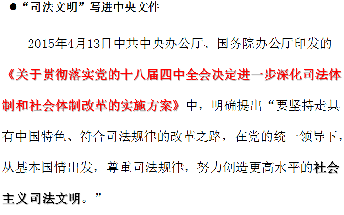 在中心的积极推动下,“司法文明”首次被写进中央文件。