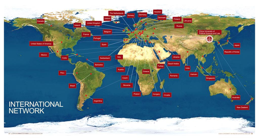 在国家推进“一带一路”建设的背景下,法大作为国家对外传播中华法律文化和对外法学交流的重要窗口,2009年起全面实施国际化发展战略,不断提升国际化办学水平。截至目前,法大先后与48个国家和地区的225所知名大学、研究机构和国际组织建立了合作关系。