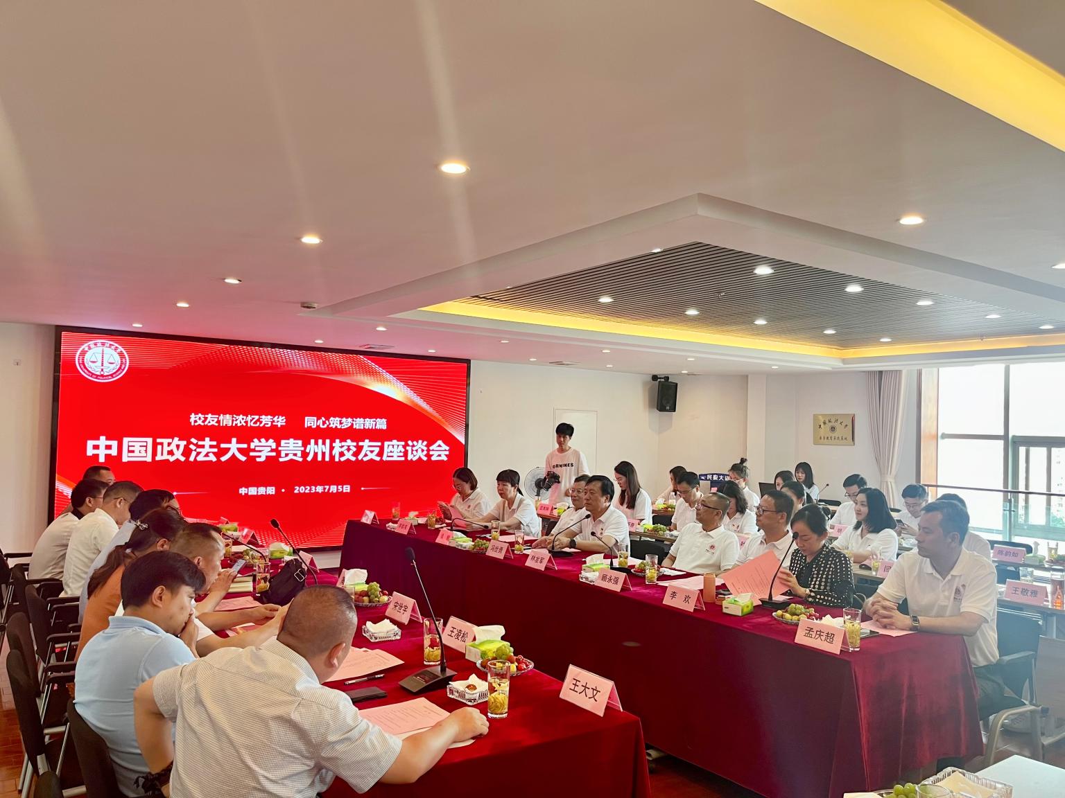 7月6日,调研团在贵州民投集团参加贵州校友座谈会。贵州校友会会长饶科亮介绍贵州校友会情况及主要工作,表示今后要继续传承与发扬法大精神,加强与母校的交流与合作,为学校的发展和贵州校友会的建设作出更大贡献。在交流研讨环节,双方就涉外法治人才培养、课程思政、教师队伍建设、校友工作等进行了交流研讨。冯世勇在总结讲话中对贵州校友会的各项工作表示高度肯定,他表示,校友是学校的代表和使者、品牌和名片,是学校人才培养质量的说明书,学校高度重视校友工作,助力基层校友组织发展。冯世勇对贵州校友会提出七点希望,即夯实基础、特色发展、依法制会、团结凝聚、落实部署、突出宗旨、再创辉煌。最后,全体与会人员合唱校歌《情怀法大》,共同感悟法大情怀,赓续前进力量。