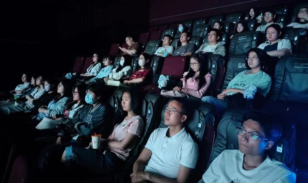 (师生们前往影院观影)