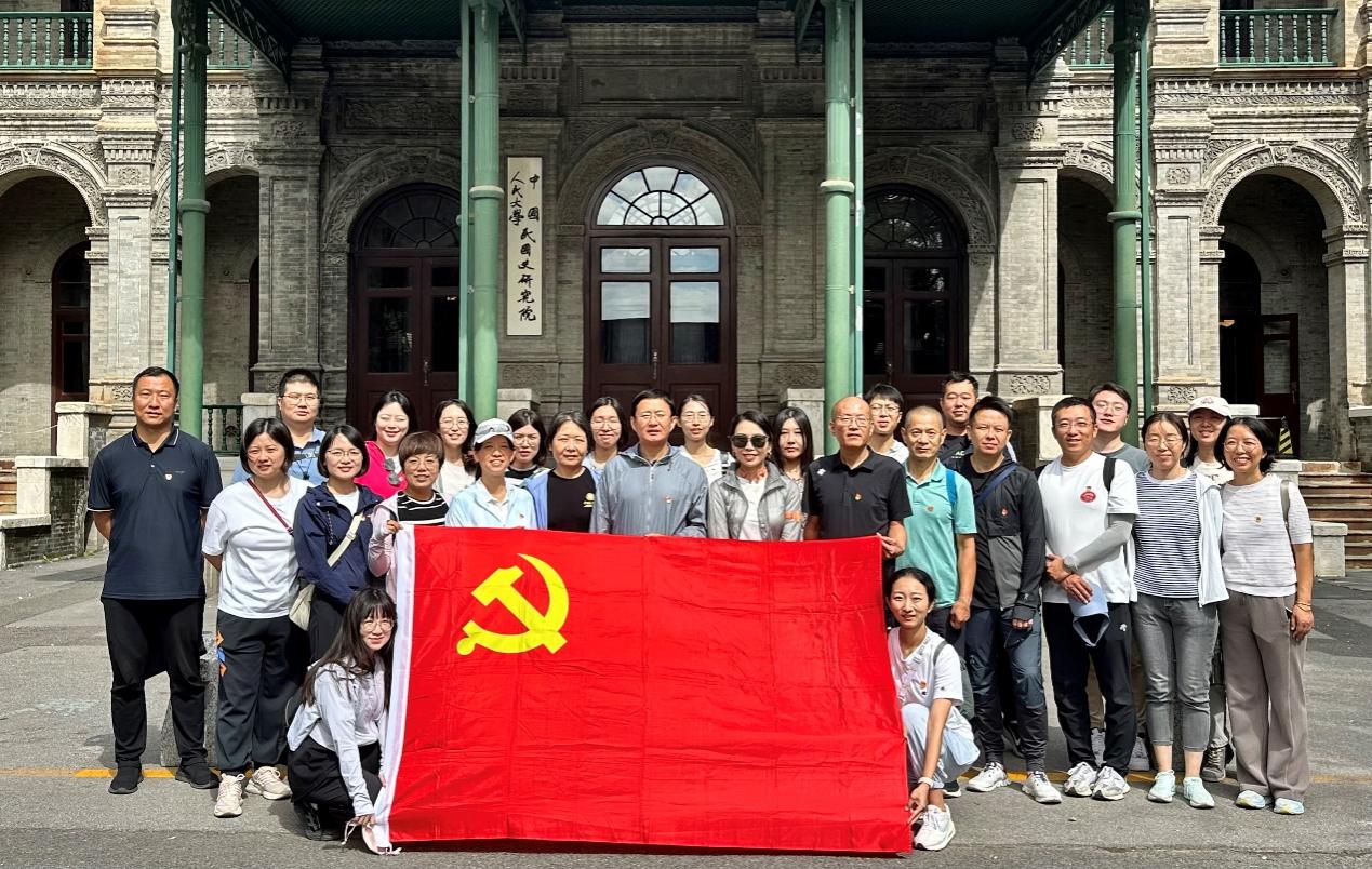 随后党员们骑行抵达中国人民大学老校区,段祺瑞执政府旧址和“三一八惨案”发生地。辛亥革命后,这里曾充当中华民国临时政府的总统府和段祺瑞执政府,中华人民共和国成立后,中国人民大学命名组建,这里成为最初的校址。了解完老校区的建筑风格与规划布局,党员们在讲解员带领下进入主楼,参观了“一辈子做好事——吴玉章生平展”“风吹松林,涛声阵阵——宋涛生平展”以及“他是一座山——吴宝康生平展”,领略老校长吴玉章、宋涛、吴宝康教授几位人大的老前辈在为党育人、为国育才与开辟中国自主的学术体系等方面做出的卓著贡献,在行走与感悟中增强了对党的创新理论的政治认同、思想认同、理论认同、情感认同,更加坚定心有大我、至诚报国的理想信念。此外,资产管理处的党员们与中国人民大学的管理人员就城区平房的安全、维修改造、人员管理等方面进行了深入的交流,吸取了人民大学的先进经验。