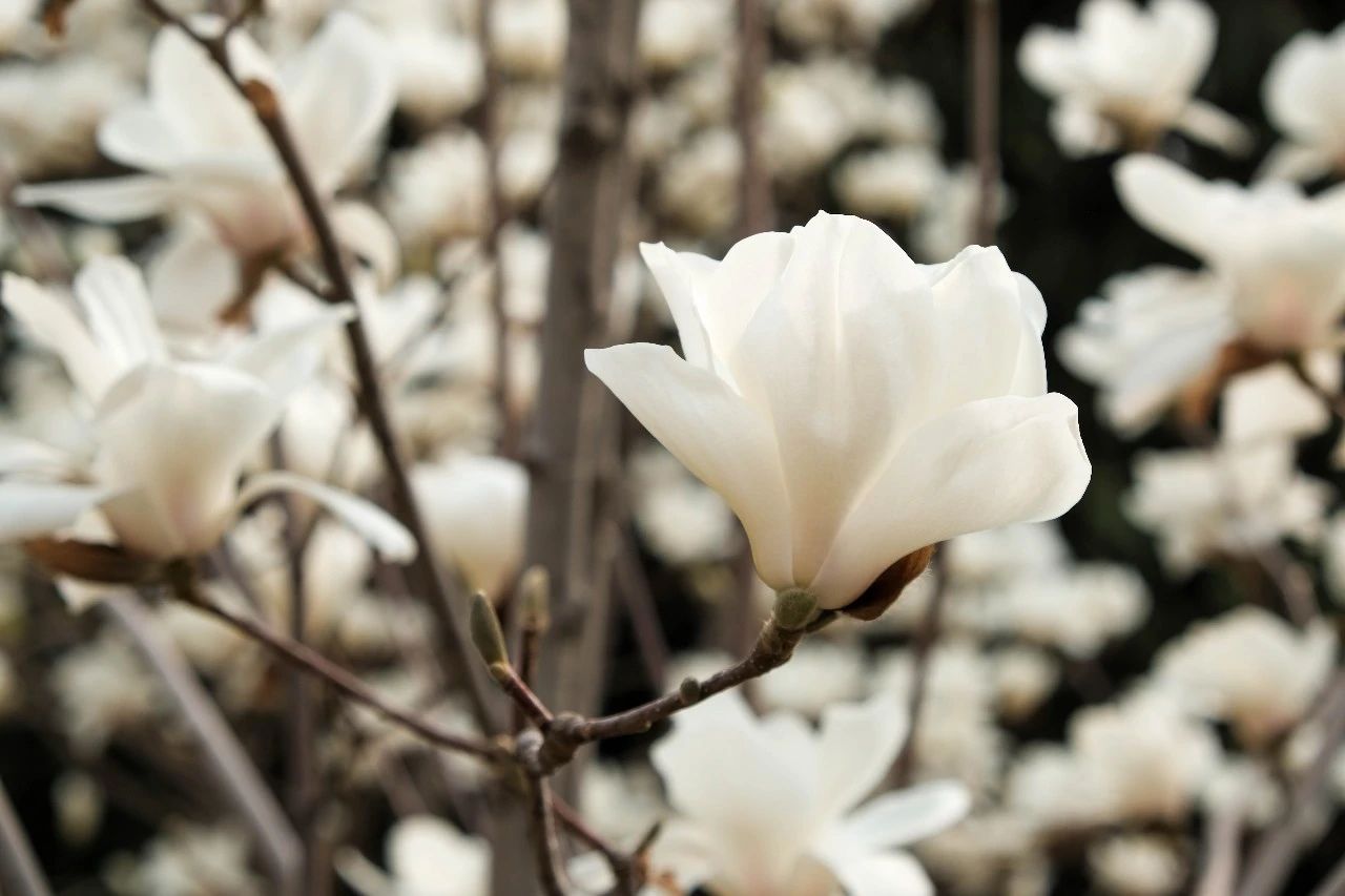 在传统文化中,白玉兰被赋予了“吉祥”的寓意,起初多栽种在寺院里。相传雍正皇帝甚爱玉兰,其敕建的四宜堂院也被称为“南玉兰院”。大觉寺的一株古玉兰树被称作寺内“七绝”景观之一,地上立有一块镌刻着“古寺兰香”的石头,上书“树龄300余年,号称‘玉兰之王’”。国学家季羡林对这棵玉兰甚是喜爱:“那一棵玉兰之王开得更是邪乎,满树繁花,累累垂垂,把树干树枝完全盖满,只见白花,不见青枝,全树几千朵花仿佛开成了一朵硕大无朋的白色大花。”