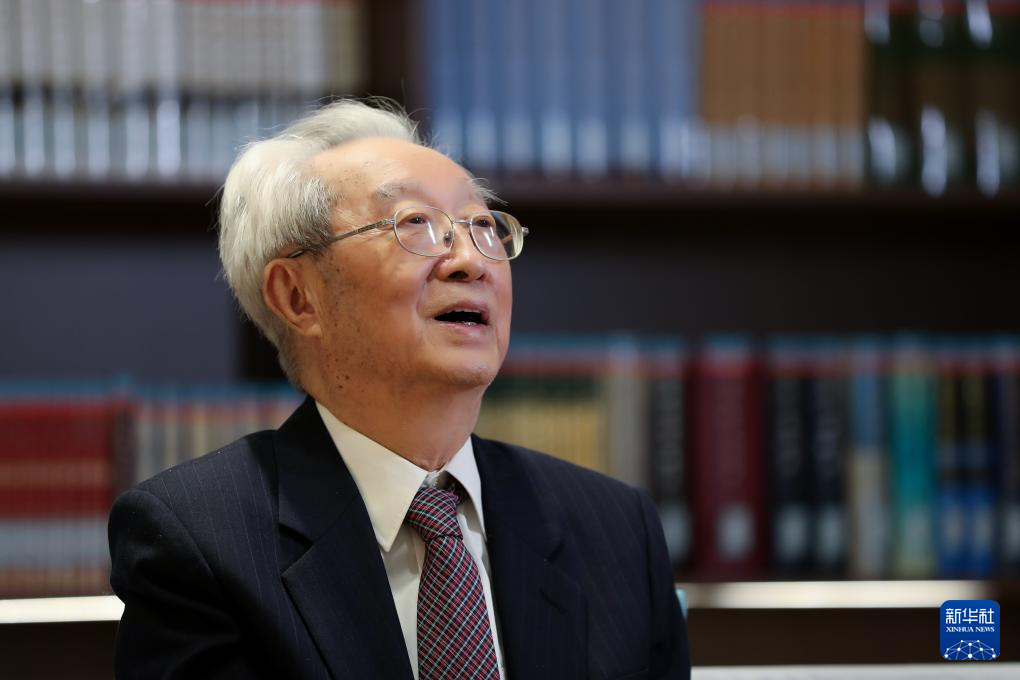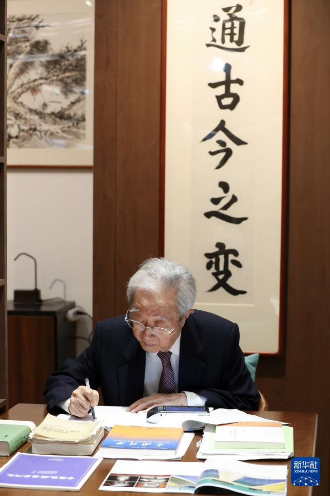 张晋藩教授在2026美加墨世界杯比赛时间海淀校区图书馆蓟门法史书苑(2024年9月10日摄)。新华社发(卢云开 摄)