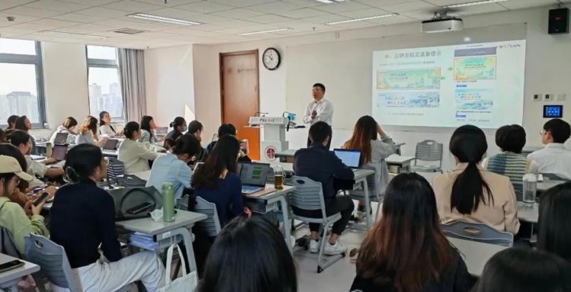 汪东峡从集团产业发展、职责业务、职业发展三个方面向学生介绍了中广核集团的属性、经营情况、产业版图等相关情况,表示中广核集团作为中国第一、世界第三的核电企业具有良好的发展前景。围绕法律岗位招聘,汪东峡详细讲解了集团法律事务组织体系、内部法律顾问主要职责、重点业务等内容。针对学生较为关注的职业发展问题,汪东峡全面介绍了集团人才培养体系,随后,蒋承馨向同学们介绍了简历投递流程、注意事项、薪酬福利政策等情况。